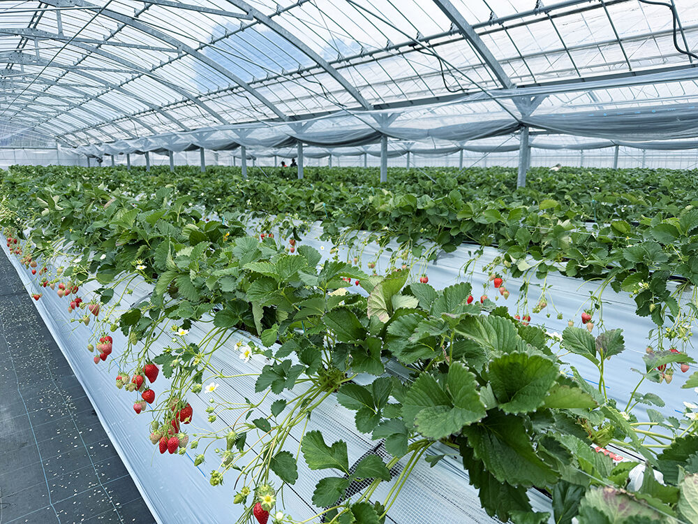 完全予約制の「いるべのいちご園」へ家族で、イチゴ狩りに訪れた。