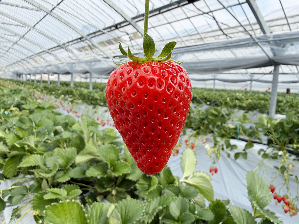 完全予約制の「いるべのいちご園」へ家族で、イチゴ狩りに訪れた。